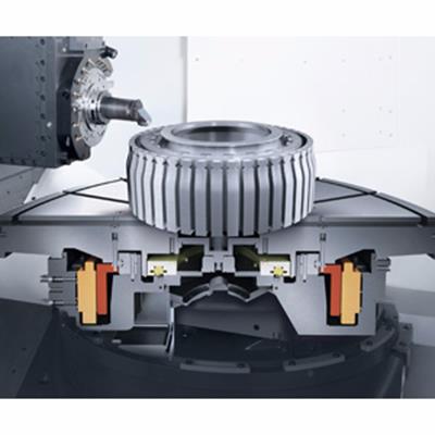 一次装夹完成铣削和车削,DirectDrive(直接驱动)技术的工作台且最高转速400 rpm; 5轴联动加工,配NC回转工作台和受控B轴,或选配受控A轴; duoBLOCK® 机床结构,精度高和动态性能好而且加工区接近性能好; 电子平衡传感器,配Siemens 840D solutionline和MillPlus IT; 生产套件:冷却液箱980 l,40 bar通过主轴心孔的内冷系统,纸带过滤器,排屑器和旋转观察窗。
