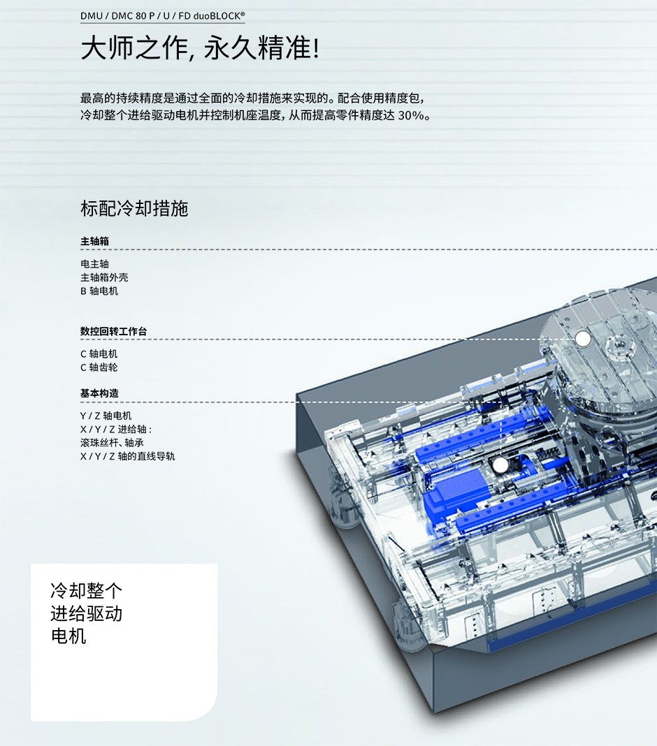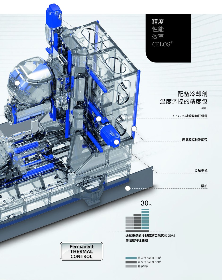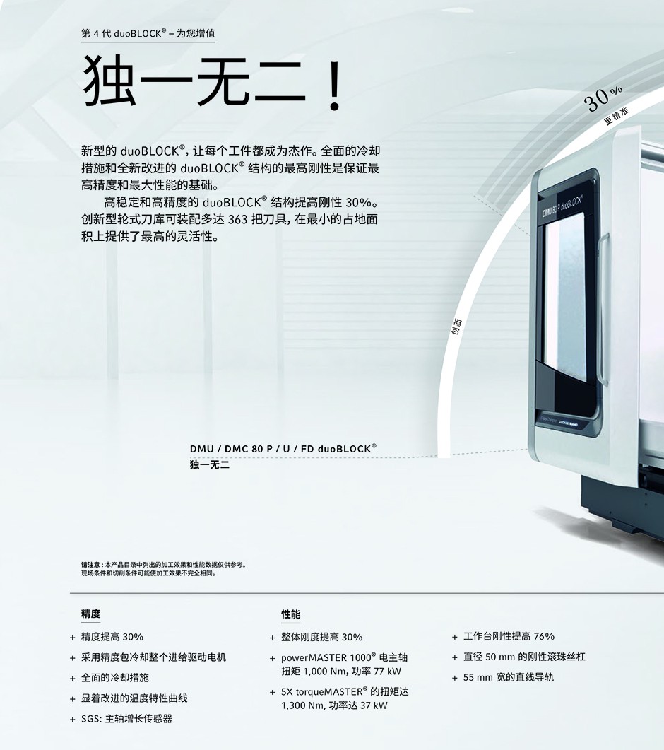 精度: 工件精度提高30%并且所有驱动全部采用水冷技术提高精度; 性能: 刚性提高30%,提供最高生产力; 效率: 能耗下降30%,采用智能化按需用电系统; 标配机型拥有最高生产力,占地面积小,回转托盘库换盘速度快,允许同时装夹; 创新的高速轮式刀库,换刀时间仅0.5秒,最大刀位数可达453个,占地面积小。
